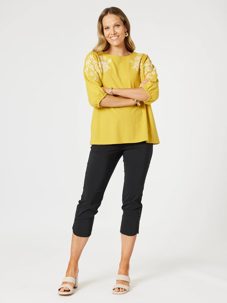 - Crafted from a soft, stretchy fabric for ease and comfort, this high-rise pant features a slim leg and cropped length.