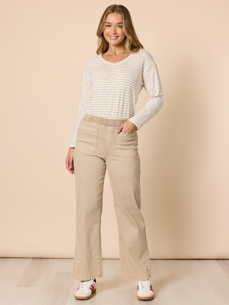 - Feel confident and comfortable in the Carpenter Stretch Wide Leg Pull-On Denim Jean.