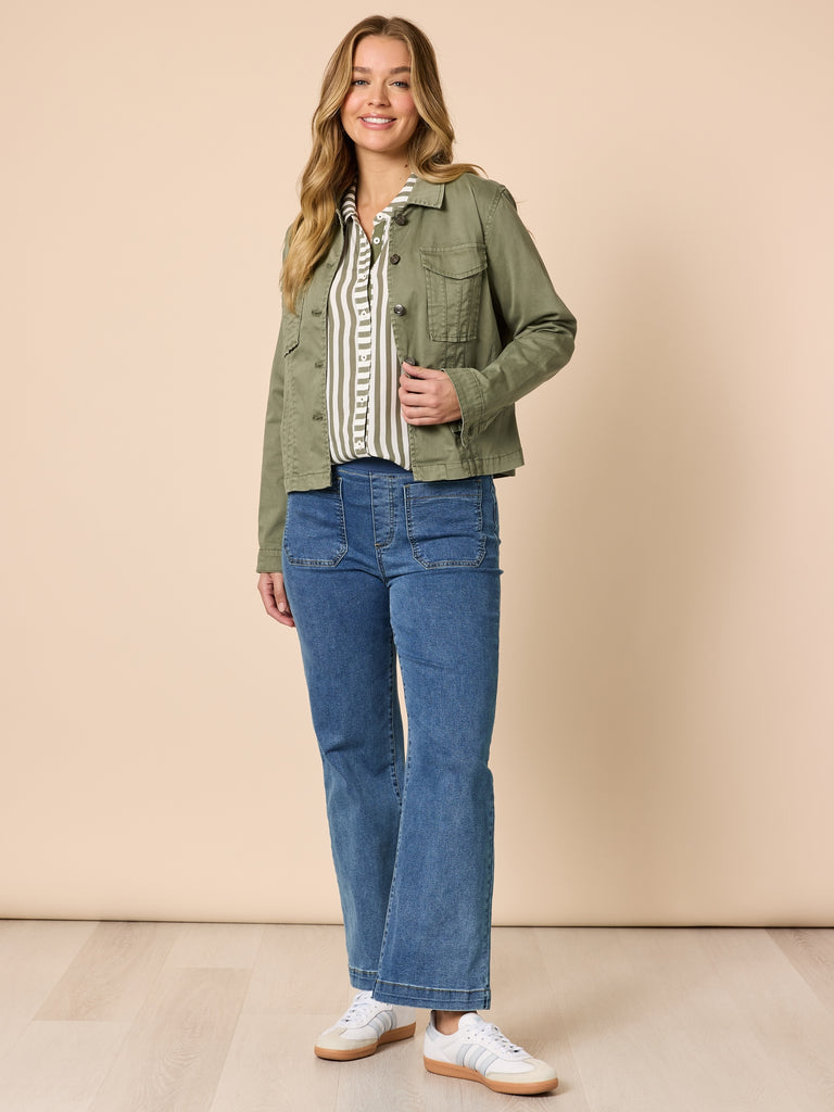 - The stretch denim provides structure while allowing easy movement throughout your day.