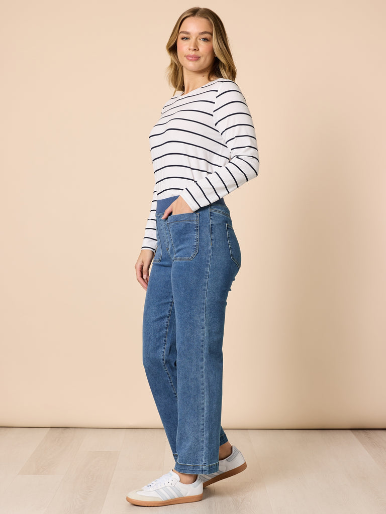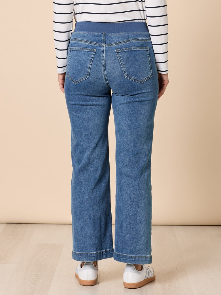 Carpenter Wide Leg Pull on Jean - Washed Denim