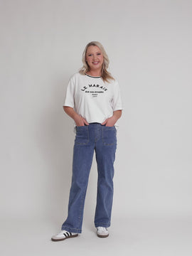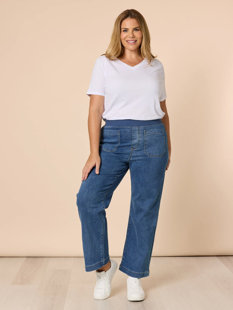 Carpenter Stretch Wide Leg Pull On Jean - Washed Denim
