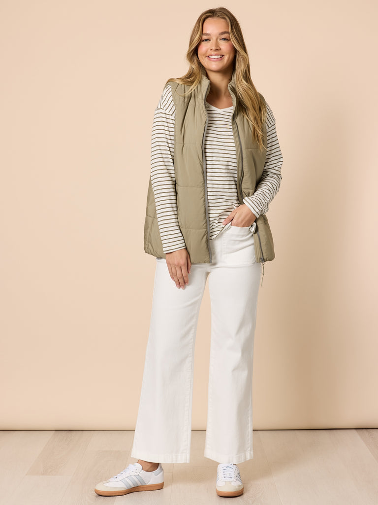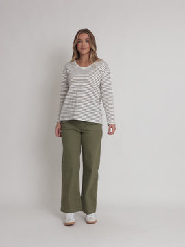 City Stripe Long Sleeve Tee - Khaki Ivory