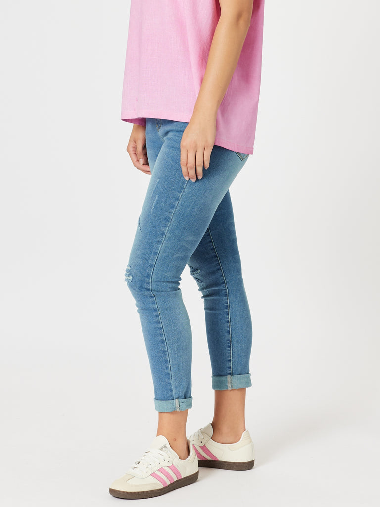 LA Distressed Pull On Stretch Denim Jean - Denim