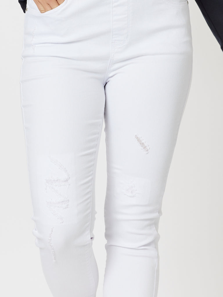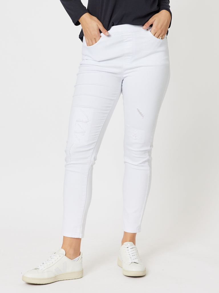 Crafted from a super stretchy denim fabric with an encased elastic waistband that gives you 10/10 all day comfort