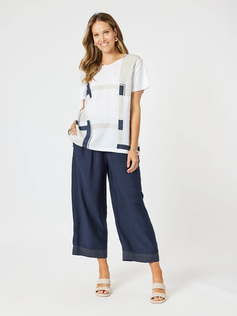 Geometric Print Top - White/Navy