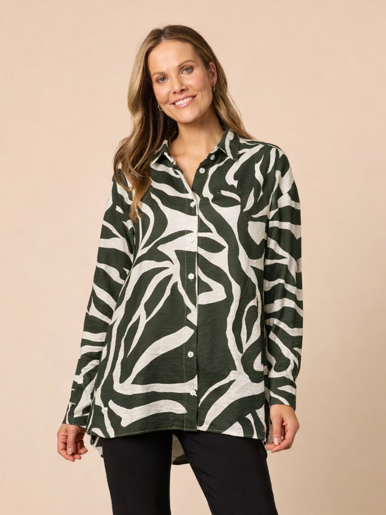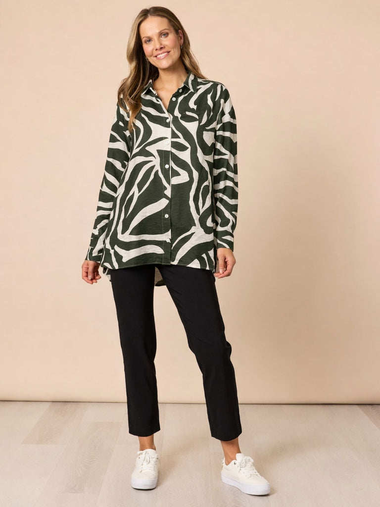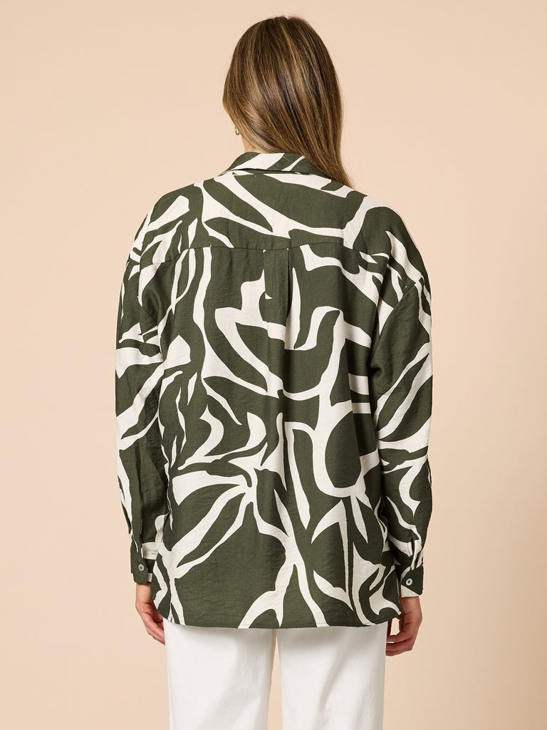 Lyon Print Shirt - Khaki Ivory