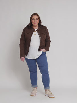 - Sparkle trim detail at the epaulettes and down the centre front placket