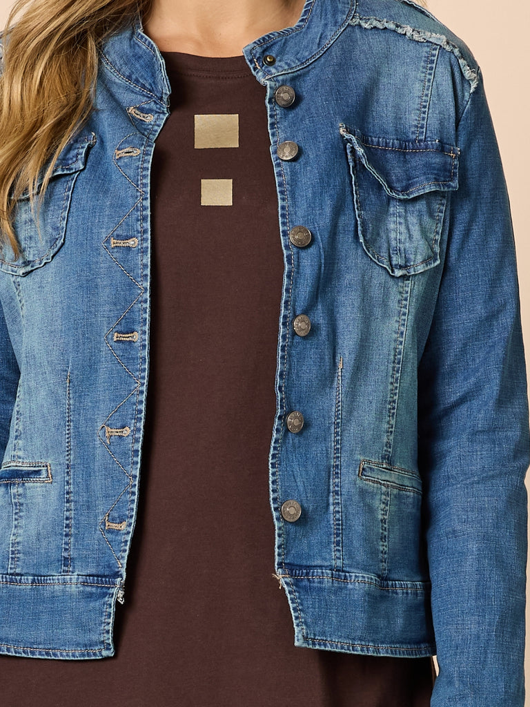 Military Style Denim Jacket - Denim