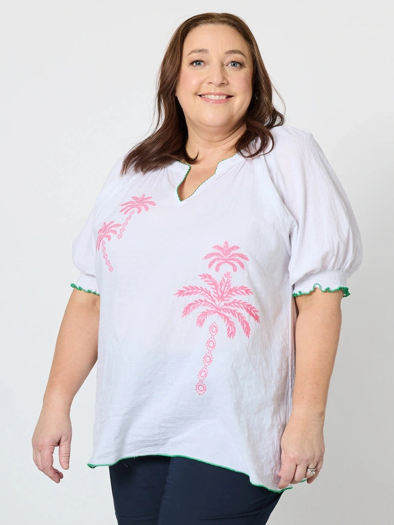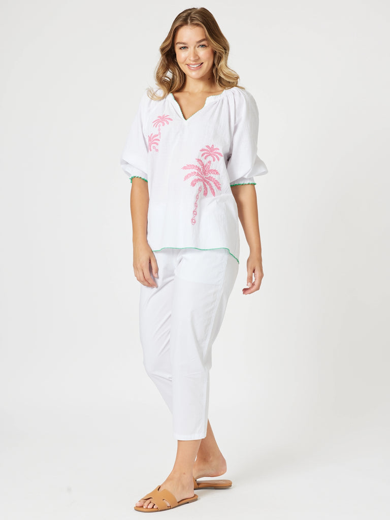 Pina Colada Embroidered Top - White / Pink